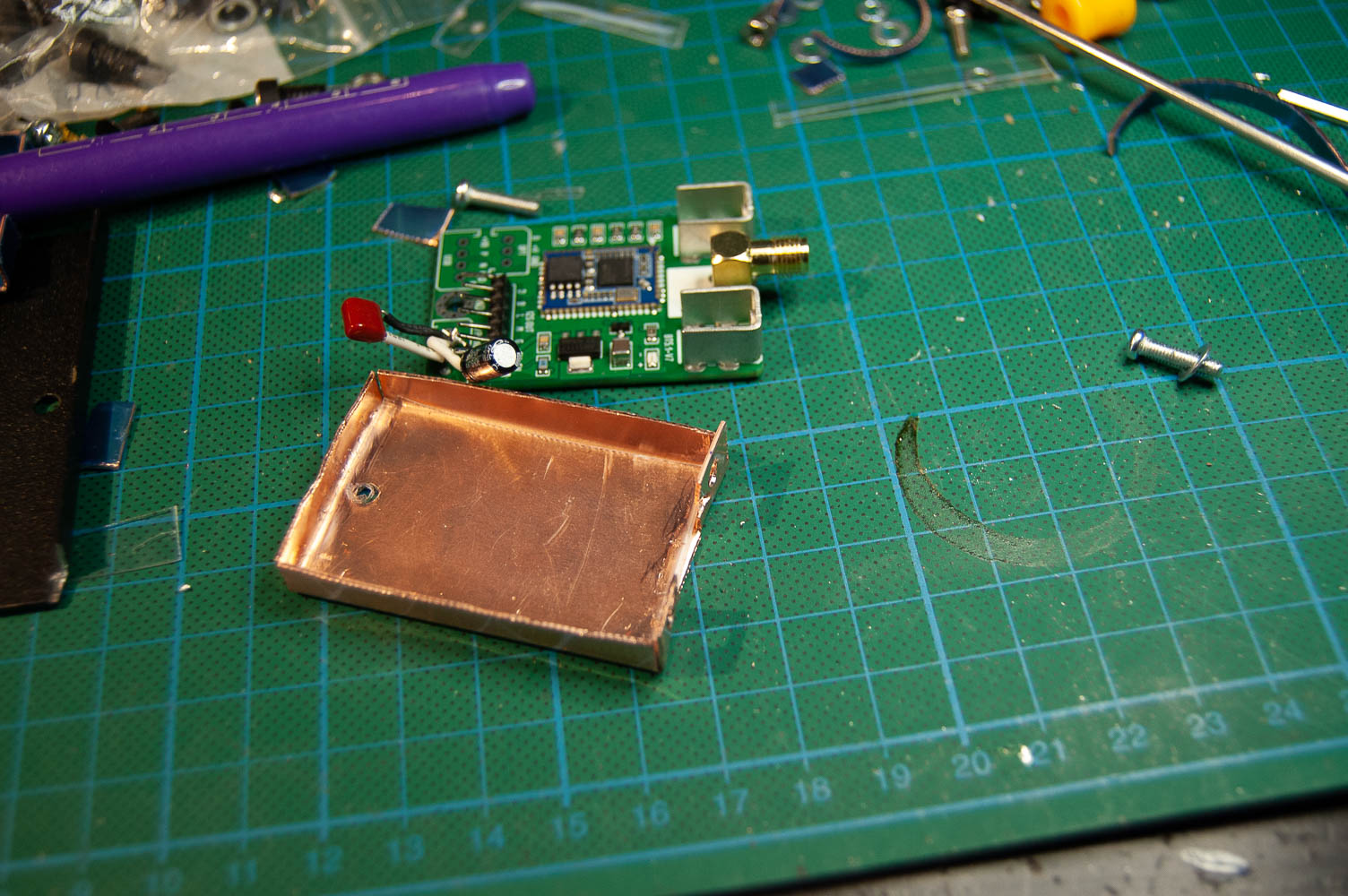 But including a noisy Radio frequency module also has its issues, here I made a thick copper tub for it to go in, itself mounted at the very top of the chassis, and the antenna only ever external.